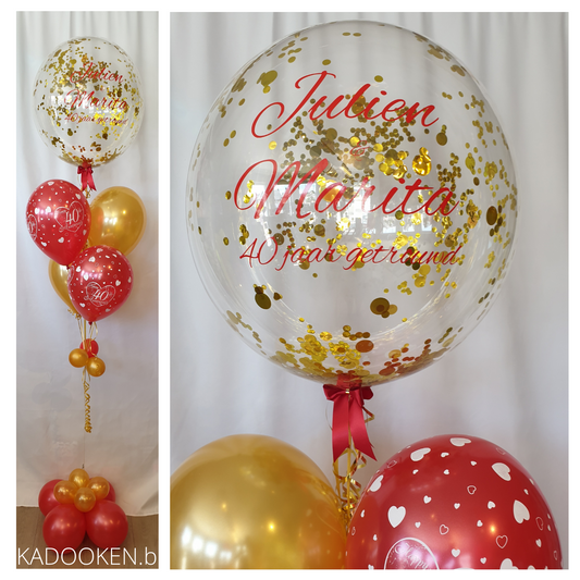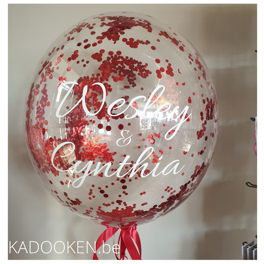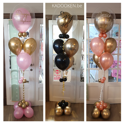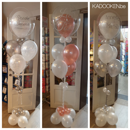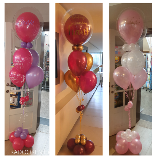 Bubbleboeket gevuld met mini ballonnen met eigen tekst