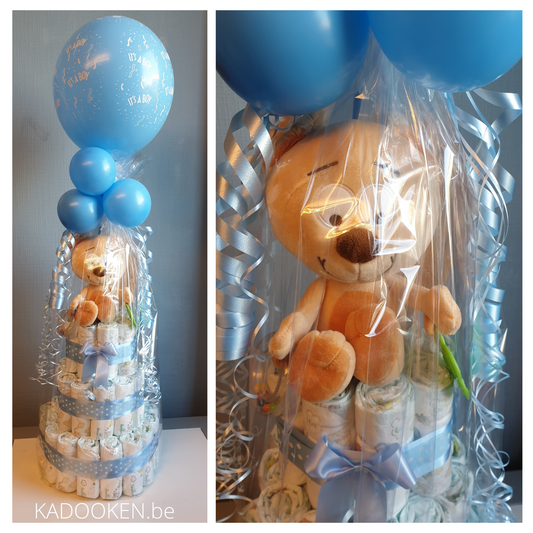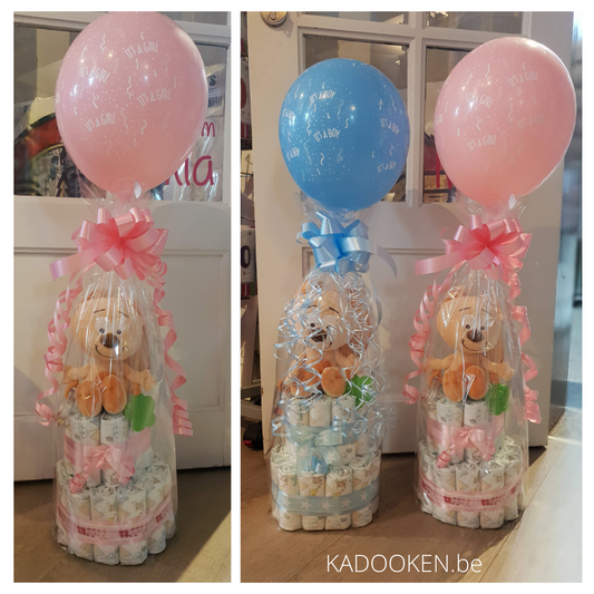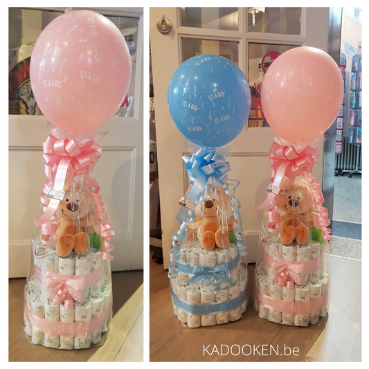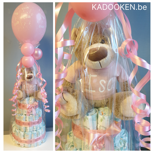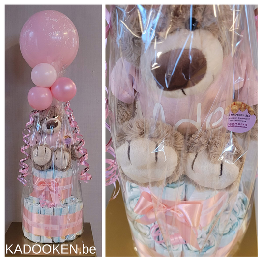 Pampertaart Small met standaard knuffel - Roze/blauw Gender reveal