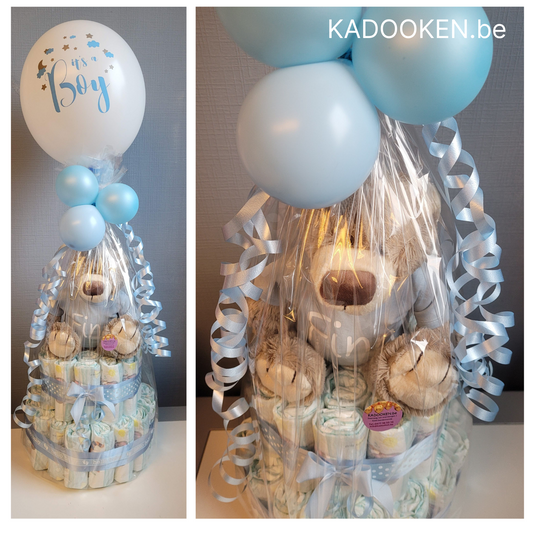 Pampertaart Large met standaard knuffel - Roze/blauw Gender reveal