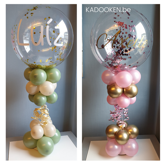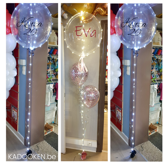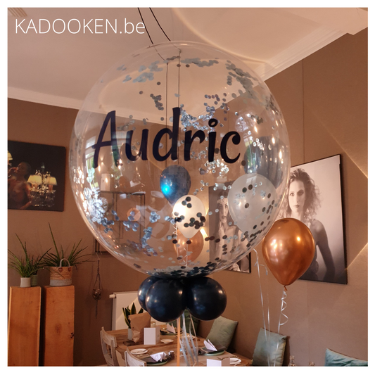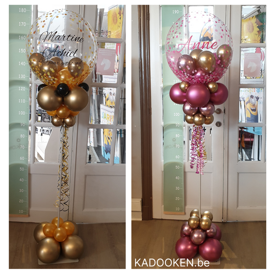 Bubble ballon met eigen tekst gevuld met mini-ballonnen