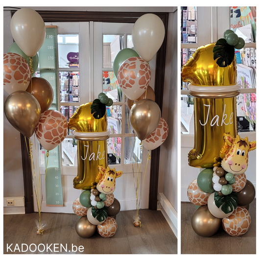Foliecijfer op versierde ballonvoet met eigen tekst - Jungle thema