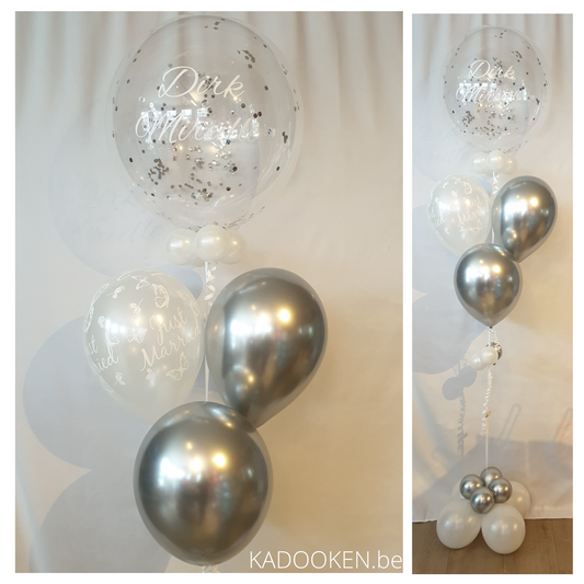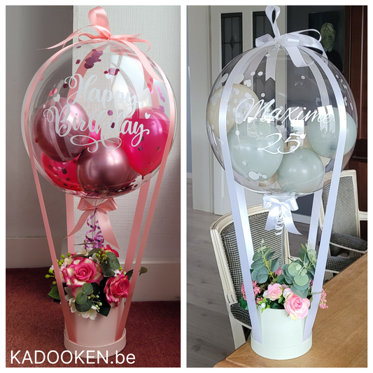 Bubbleboeket gevuld met mini ballonnen met eigen tekst