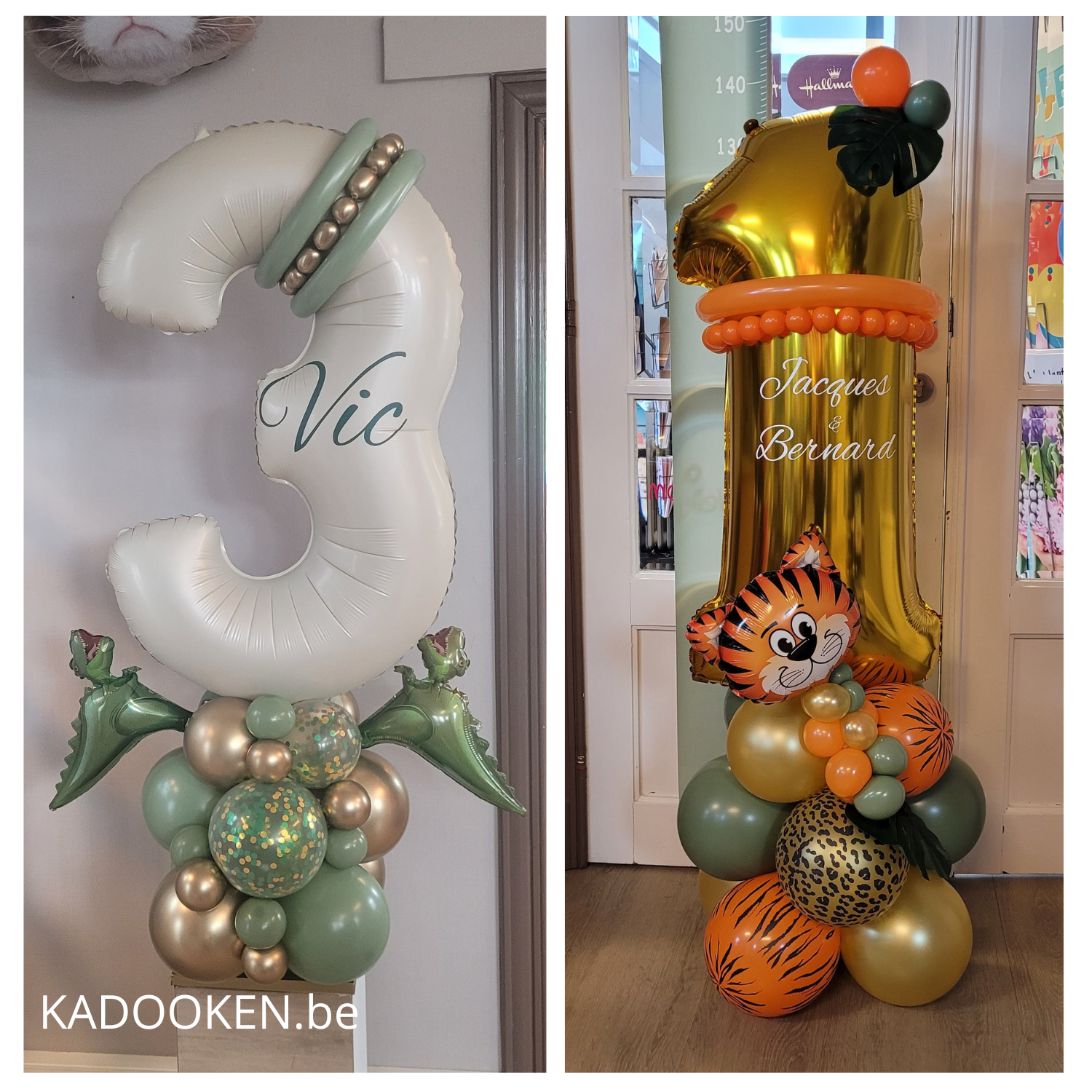 Foliecijfer op versierde ballonvoet met eigen tekst - Jungle thema