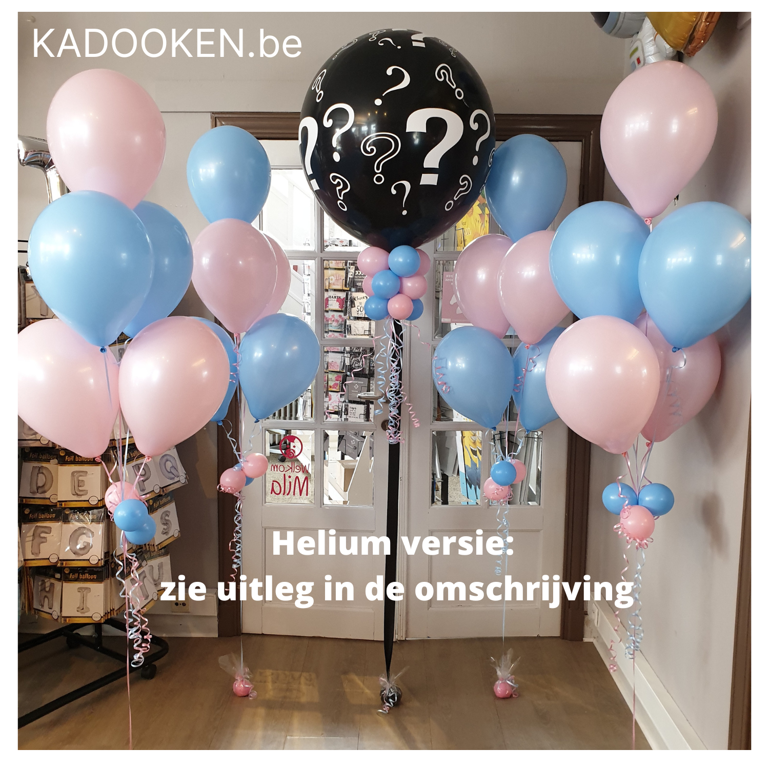 Diameter ballon: ongeveer 75 cm, gevuld met 10 mini ballonnen en confetti.