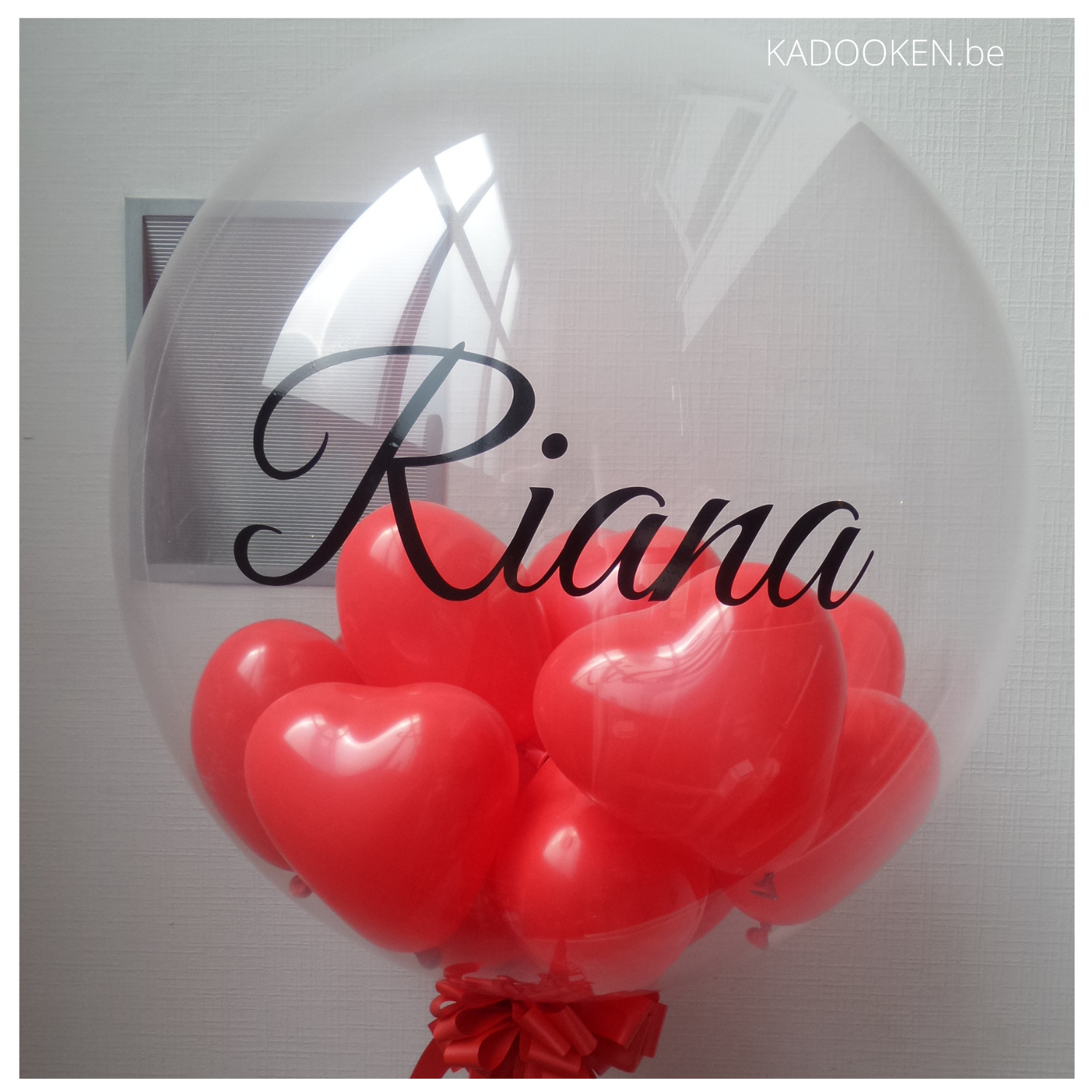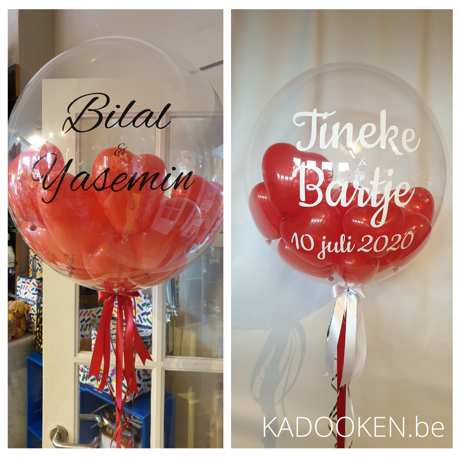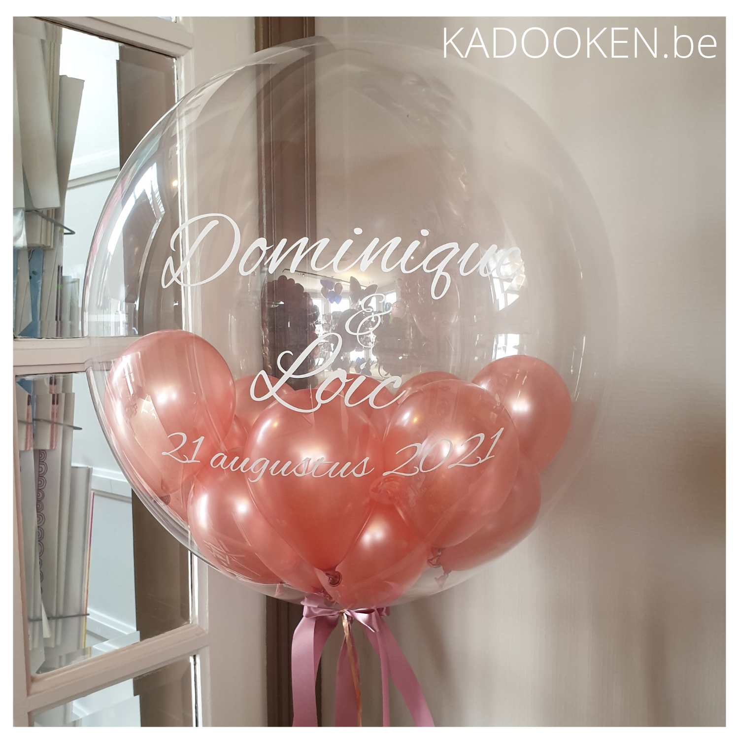 Bubble ballon met eigen tekst gevuld met mini-ballonnen