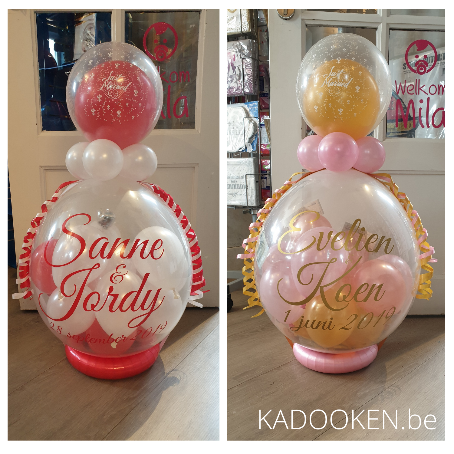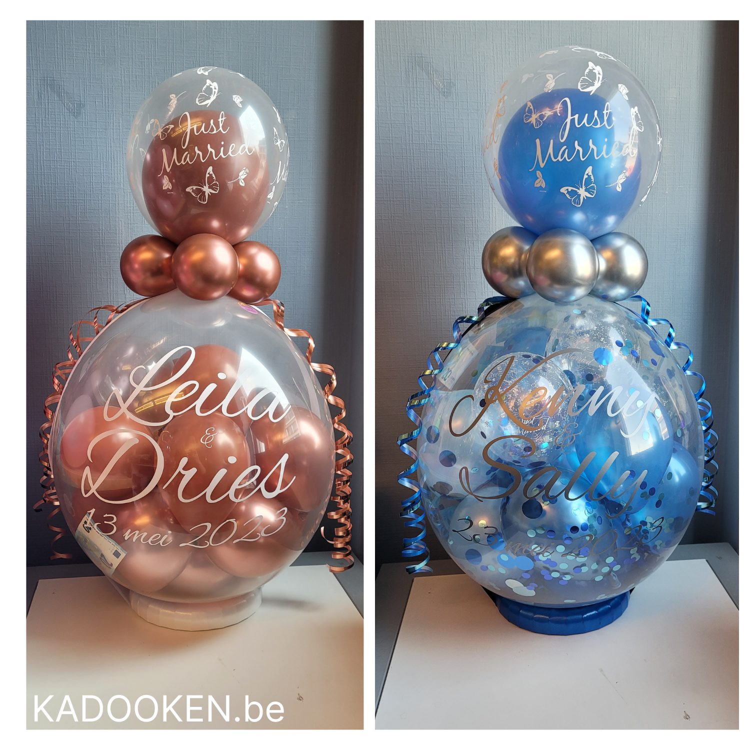 - Inclusief personalisatie met de namen van het koppel en eventueel de trouwdatum op de grote ballon