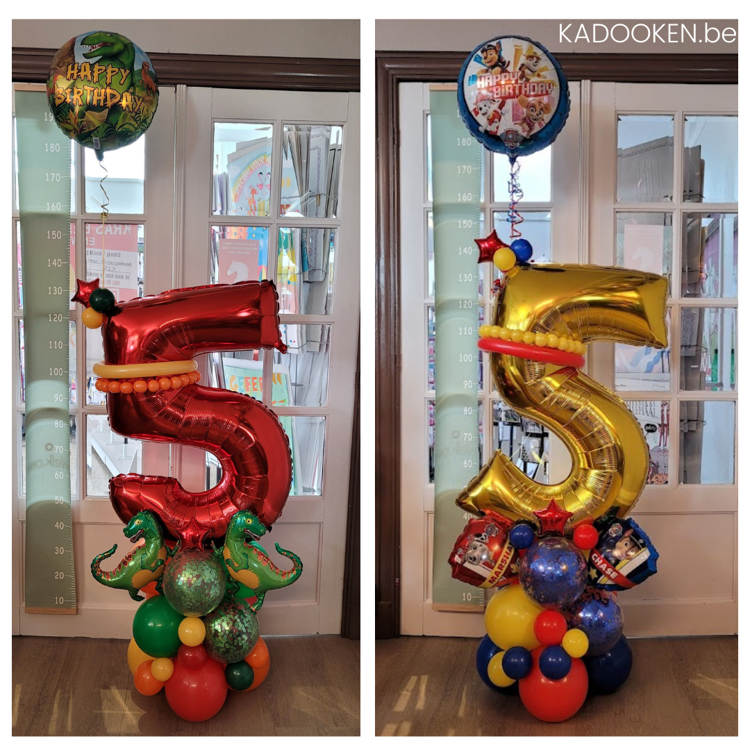 Groot foliecijfer op versierde ballonvoet met thema - Prijs per cijfer