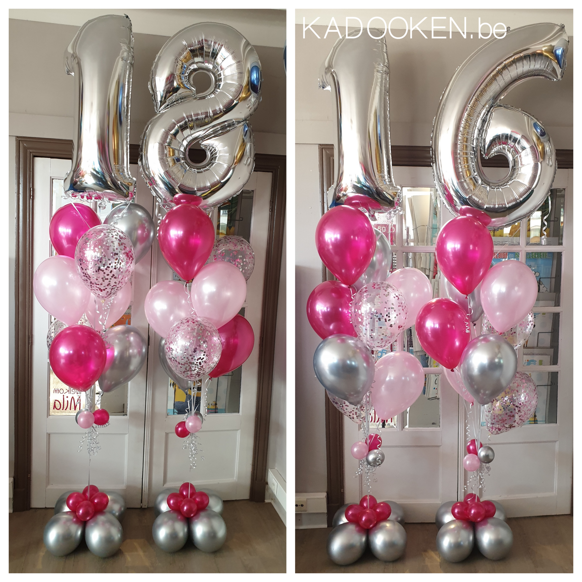 - 8 heliumballonnen onder het cijfer waarvan 2 met confetti inbegrepen