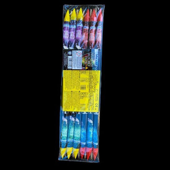12 kleine vuurpijlen met 4 verschillende kleureffecten (red stars, green stars, white glitter en red and green