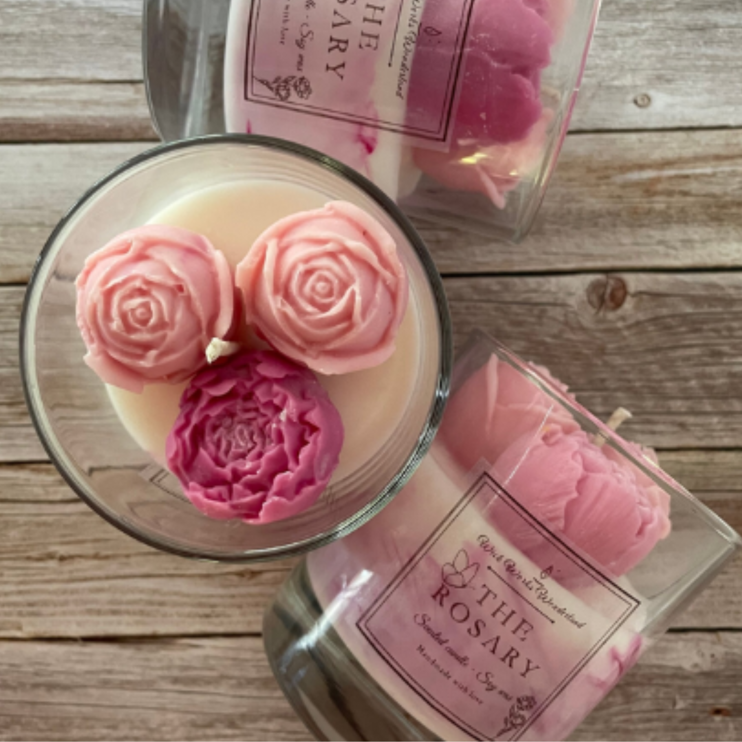 Een handgemaakte geurkaars met rozen is een romantische en luxe toevoeging aan je huis, de geur van rozen heeft een kalmerend en verfrissend effect. Rozen worden vaak geassocieerd met schoonheid, liefde en elegantie, ze brengen een verfijnde geur die perfect is voor ontspanning of een gezellige sfeer.